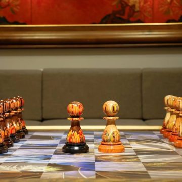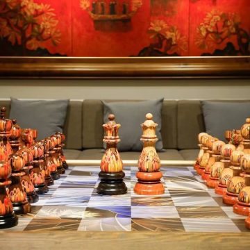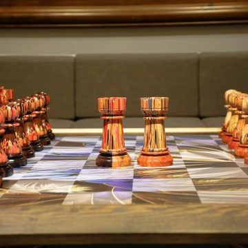 Full Set Giant Deluxe Chess Pieces with Board – High End Blended of Wood, Resin and Colored Pencils.